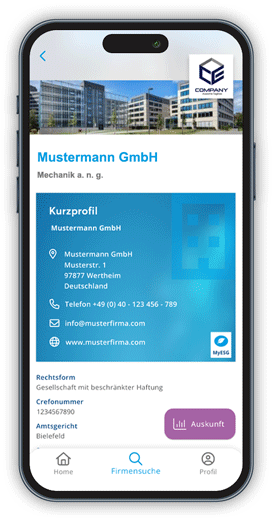 Sie suchen Informationen zu einem Unternehmen? Über die Schnittstelle zum Portal Mein Firmeneintrag erhalten Sie Zugriff auf mehr als 5 Mio. Unternehmensdatensätze. Nutzen Sie die Firmensuche direkt von der Startseite aus: Einfach Unternehmensnamen eintippen – die Autovervollständigung Smart Sign-up schlägt ihnen passende Firmen vor und Sie erhalten ein Kurzprofil mit Firmennamen, Anschrift & Kontaktdaten.