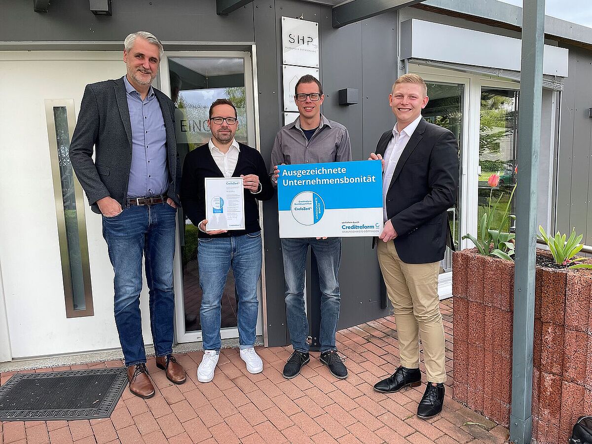 Eine ausgezeichnete Bonität bescheinigt die Creditreform Braunschweig Göttingen Bruns & Harland GmbH & Co. KG der SHP - Team GmbH mit der Verleihung des Creditreform Bonitätszertifikats (CrefoZert).