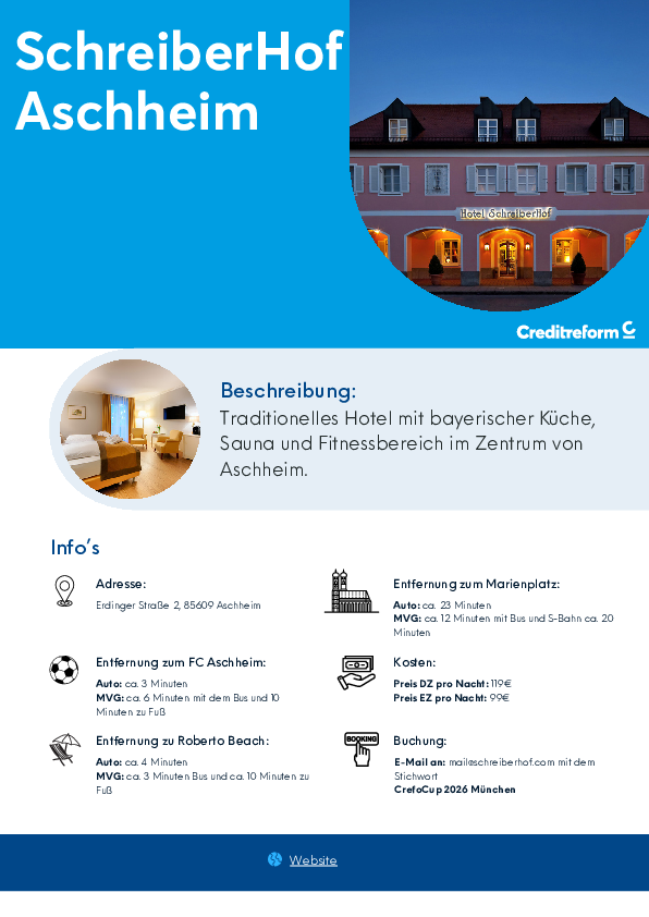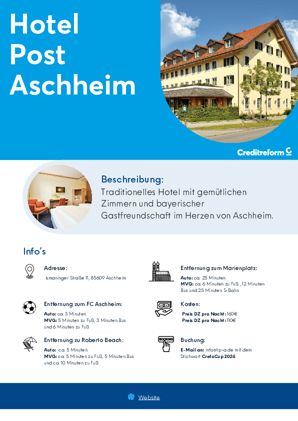 Das Organisationsteam von Creditreform München steht Euch bei Rückfragen jederzeit gerne zur Verfügung: crefocup@muenchen.creditreform.de